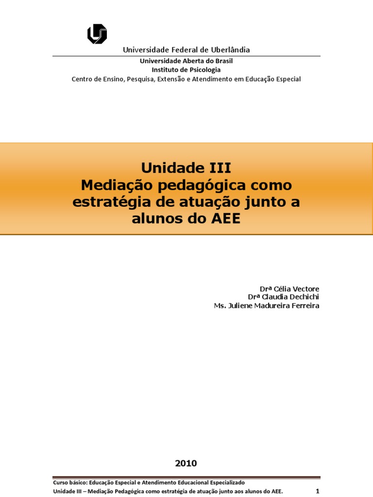 Unidade III Mediao pedaggica como estratgia de atuao junto a alunos do AEE