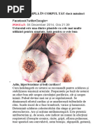 n cazul n care se va folosi extern se va dubla cantitatea de planta. Este bine ca dupa 15 zile de tratament sa se faca o pauza de 15 zile. Unguente: la 100 g grasime (untura de porc, unt fiert nainte pentru ndepartarea impuritatilor) se va adauga 50 g de planta macinata fin. Se fierbe timp de 3 ore pe baia de apa. Se strecoara calda, apoi se pune la rece n cutiute mici. n cazul n care se doreste sa fie mai consistenta se poate adauga putina ceara de albine ncalzind din nou tot pe baie de apa pentru topirea cerii. La racire se va mesteca bine pentru ca are tendinta sa se stratifice. n aceasta crema se poate pune putin propolis brut (10- 20 g) si se topeste din nou, amestecnd pna la racirea complecta. Se va tine la rece n cutiute mici. Praf: se transforma n praf planta cu rsnita de cafea. Se va lua cte un vrf de cutit 1 lingurita de trei ori pe zi. Acesta se va tine sub limba timp de 10 minute, dupa care se va nghitii cu putina apa. Tinctura - o parte planta macinata se va pune ntr-o sticla care are capac ermetic. Se mai adauga 250 ml alcool alimentar de 70. Se va tine la temperatura camerei timp de 15 z ile agitnd zilnic de mai multe ori. Se strecoara, se pune n recipiente mai mici nchise ermetic. Se poate folosi timp de 2 ani, daca a fost pastrata la rece, bine nchisa. Se poate folosi la urmatoarele afectiuni: abcese, ascita, astma, balonari, bronsite cronice si acute, boli la buze, cancer pulmonar, sau sn, ciroza, comotii cerebrale, constipatie, dureri de cap, edeme inflamate, digestie lenta, furuncule, gaze intestinale, hepatite, insuficienta renala, intoxicatii, iritatiile pielii, litiaza renala cu urati, micoze, migrene, ochi inflamati, pemfigus, pete pe fata, pleoape nrosite, porfirie, rani, reumatism, tumori, tuse. BTRNIs Erigeron canadiensis Fam. Compositae. Denumiri populare: buruiana de dalac, buruiana de pete, coada vacii, coada-hulpii, coada- lupului, crungulita, maturica, spirince, steluta, steluta soricelului, struta mirelui, soricel. Adusa din America si raspndita n sec. XVII-lea. n traditia populara: n tara Oltului, se spunea ca attea junghiuri au oamenii cte frunze are planta. Se folosea contra junghiurilor, reumatismului si a carbunelui. Se pisau tulpinile florifere si se legau cu ele, ori se fierbeau si cu decoct se spalau, iar cu plantele se faceau legaturi. n Neamt se spalau pe fata contra petelor si pistruilor. Compozitie chimica: ulei eteric si colina, acizi organici, saruri minerale. Actiune farmacologica: astringenta, diuretica, antireumatismala, cicatrizanta. Se foloseste la urmatoarele afectiuni: afectiuni renale, albuminurie, cistita, dalac, dureri diverse, junghi, lumbago, pete, pistrui. Preparare: 4 linguri de planta maruntita se vor pune la 500 ml apa clocotita. Se acopere pentru 10 minute apoi se strecoara. Se foloseste extern. BOBORNIC Veronica beccabunga Fam. Scrophulariaceae. Denumiri populare: brbornic de balta, bibornic, blabornic, bobolnic, boboilnic, bobonita, bobolnic, busuiocul broastei, dretel, gheata de pamnt, hiata pamntului, briboi, pribolnic. n traditia populara: pe rani si taieturi se aplicau frunze verzi, iar daca erau mai mari se pisau si se facea cu ele legaturi. Planta ntreaga se punea pe arsuri.