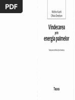 a) Cu palmele fa in fa, se inspir profund pe nas, concentrand atenia in centrul palmei stangi. La expirare atenia dumneavoastr se va focaliza in centrul palmei drepte. Exersand, dup un timp, vei percepe,in timpul expirrii, cum energia se va accelera de la palma dreapt spre palma stang, iar in timpul inspiraiei cum energia se va grbi s ajung din palma stang spre cea dreapt, trecand prin braul stang, stern, braul drept, ieind apoi prin palma dreapt. Dobandind experien, acest flux vi se va prea c se invarte continuu intre palma dreapt, palma stang, braul stang, stern, braul drept, palma dreapt, astfel inchizandu-se un circuit. La stangaci, fluxul va circula invers. b) Se ine una din palme in plan vertical, iar cu degetul arttor al celeilalte maini (inut la o distan cuprins intre 10-15 cm) indreptat spre palma opus, se vor trasa spirale, cercuri, linii etc. pan vei reui s cretei sensibilitatea palmelor. Incercai s facei acest exerciiu descriind aceleai trasee cu degetul i pe dosul palmei opuse. Dac senzaiile sunt clare i pe dosul palmei, inseamn c ai ajuns la o sensibilitate foarte bun. c) Ca un amuzament, putei incerca s direcionai fluxul de energie din deget prin cap, picior, torace, palma sesizoare fiind intotdeauna in cealalt parte a corpului. Atenie, dup ce ai dobandit sensibilitate,va trebui s v realizai singuri codificarea i decodificarea semnalelor recepionate, reuind foarte uor s difereniai diverse probleme de [Link] putea astfel diferenia diverse "goluri", "varfuri", "benzi" de energie, senzaii de cald sau rece in dreptul unor organe, pulsaii ale organelor sau zone cu energie dens sau rarefiat. Putei, de asemenea, palpa energetic diverse plante, animale, minerale. preluat de pe saitul terapii naturiste