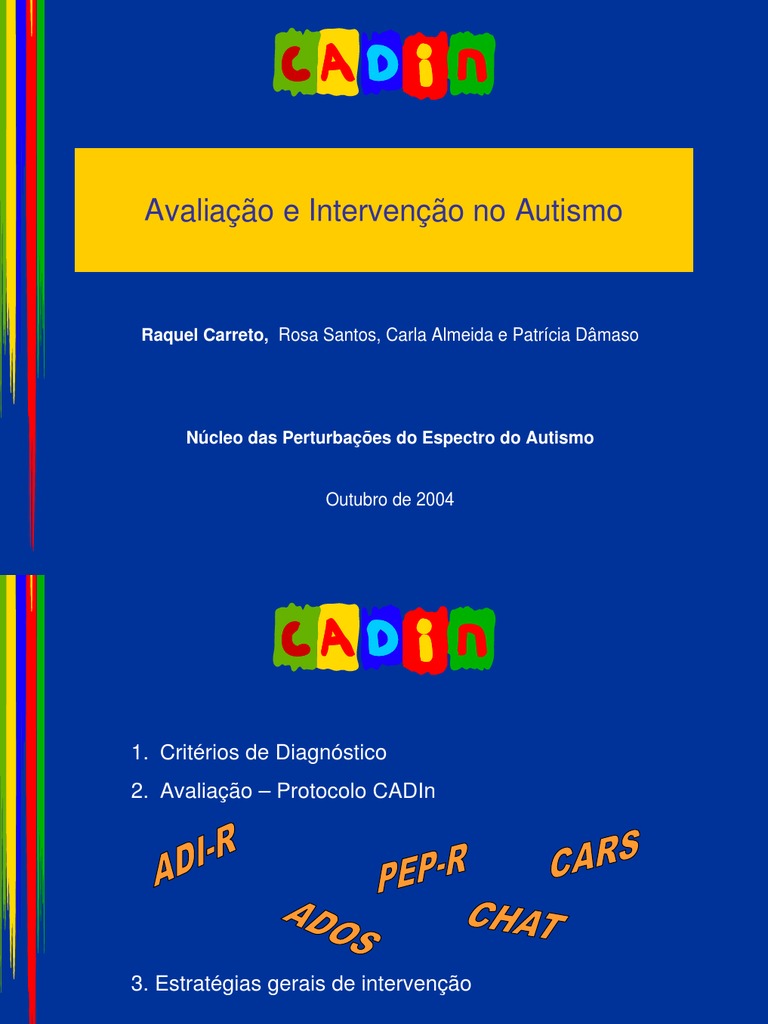 Orientação geral História do desenvolvimento Comunicação e Linguagem Desenvolvimento Social Interesses e condutas atípicos Condutas não especificadas