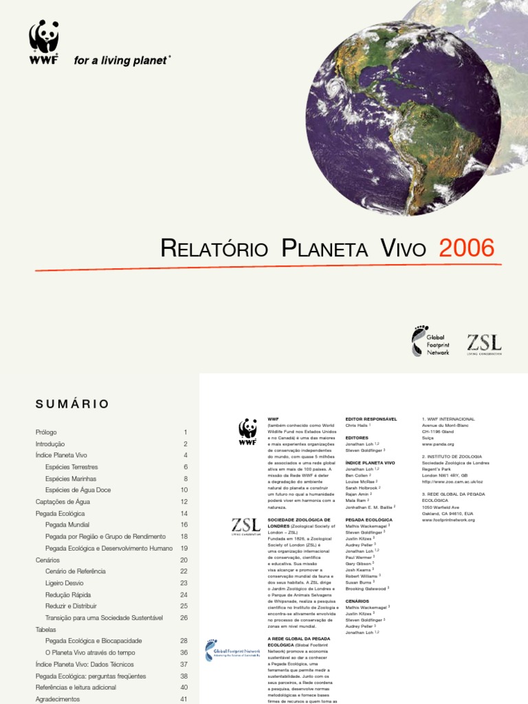 conjunto entre o grupo de sem o generoso apoio de: The Nacionais de Pegada. 2006 por WWF–World Wide geográficas neste documento