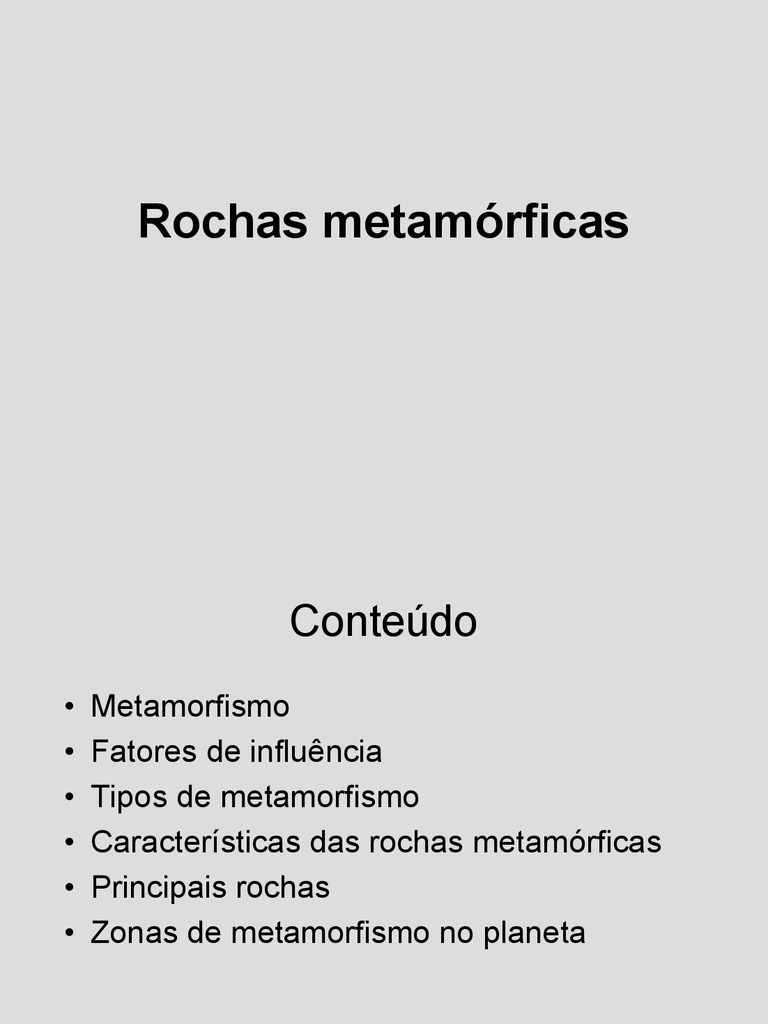 Metamorfismo Fatores de influncia Tipos de metamorfismo Caractersticas das rochas metamrficas Principais rochas Zonas de metamorfismo no planeta