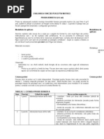 celelalte pentru c este orientat n alt direcie (se arat cartonaul). Privete cum marchez eu acest lucru (i se arat copilului). Se verific dac a neles sarcina de lucru. Itemul 1: Proba mesei Privete primul rnd. Aici sunt cteva mese. Cele mai multe au o poziie corect, dar una dintre ele a fost ntoars. Tu va trebui s-mi ari masa greit aezat. Itemul 2-4: Indicaiile sunt similare. Pentru precolari, testul se oprete la itemul 4 al subtestului IV, iar la subtestul I nu se face itemul 5. IV b) Se prezint cartonaul cu 6 fetie. Privete prima feti (se arat fetia din chenar). Acum privete-le pe celelalte. Una din ele (se indic) este la fel cu cea din chenar, adic privete n aceeai direcie, iar celelalte privesc n alt direcie. Vezi acest lucru? Itemul 5: Proba flori Aici sunt mai multe flori. Pune degetul pe cea din chenar. Caut-o pe cea din ir care este exact ca i acea din chenar. Marcheaz cu creionul floarea gsit. Itemii 6-8: instruciuni identice. Cotare: Se acord 1 punct: dac indic rspunsul corect. Se acord 0 puncte: dac nu indic rspunsul corect, chiar dac apoi se corecteaz. V) Testul Relaii spaiale Privete aici (se indic partea stng, sus). n aceast parte sunt desenate mai multe puncte i un baston. Urmrete cu degetul linia bastonului. Acum privete n aceast parte (dreapta). Vezi punctele fr baston. Va trebui s desenezi cu creionul o linie n aa fel nct partea din stnga s se potriveasc exact cu partea din dreapta. Instruciuni identice pentru toi itemii. Testul se termin pentru colarii mici dup itemul 7, iar pentru precolari, dup itemul 4. Cotare: