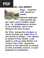 Scurt Istoric La 170 de kilometri de Bucuresti, capitala Romaniei, se gaseste Municipiul Brasov, resedinta administrativa a judetului cu acelasi nume. Drumul strabate Valea Prahovei, trecatoarea Predeal, astfel incat Brasovul este un oras situat la inaltume in Romania. Urme ale existentei umane in zona inapoi cu 60.000 de ani, locuitorii acestor parti au trecut fara indoiala prin toate stagiile specifice civilizatiei europene antice. Cel mai impresionant monument al antichitatii este Sanctuarul dacic de la Racos, greu accesibil turistilor curiosi. Alta marturie a trecutului glorios al istoriei este tabara romana de la Rasnov, care se gasea la nord-estul granitei Imperiului Roman, imperiu care se intindea in secolul al doilea d. Hr. pana la municipiul Brasov de astazi. O inscriptie in piatra ne da numele dacic al localitatii, Cumidava. Brasovul si vecinatatile sale, Tara Barsei cum mai este cunoscut platoul, a jucat un rol important in Evul Mediu, detinand trei puncte strategice care