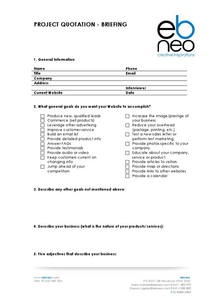1. General Information Name Title Company Address Current Website Phone Email