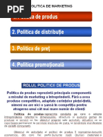 repoziionri; reduceri de cost. Myers realizeaz o clasificare n funcie de gradul de difereniere a produsului nou fa de cele existente pe pia, astfel: inovaii; creai; nlocuiri; imitaii. Se pot diferenia urmtoarele categorii de produse: - produse absolut noi: destinate acoperirii unor nevoi latente; aceste produse au o pondere mic, apar n urma unor cercetri laborioase; - produse noi: destinate satisfacerii unor nevoi deja manifestate pe pia, dar la un alt nivel calitativ dect la vechilor produse din aceeai grup. Ponderea lor este destul de mare fa de prima categorie, ele se produc i se comercializeaz n condiii de concuren de pia, urmnd s fie scoase din producie n faza de declin al vieii lor. Dup locul n care este consemnat noutatea unui produs se disting: - produse noi pentru unitatea care le produce sau comercializeaz; - produse noi pentru piaa pe care urmeaz a fi lansate; - produse absolut noi, ce nu au aprut anterior pe nici o pia. Introducerea produselor noi pe pia implic o mare doz de risc pentru ntreprindere i este un proces mult mai dificil i costisitor dect administrarea produselor existente. Aceste produse noi sunt destinate satisfacerii unor nevoi deja manifestate pe pia, dar la un alt nivel cantitativ i calitativ, dect al celor deja existente. Un produs nou este bunul care prezint una sau mai multe nsuiri noi sau modificate sau pune n valoare o nsuire care nu a fost cunoscut fa de produsele existente pe pia. nnoirea produselor poate fi fcut pe mai multe ci, dintre care cele mai des ntlnite sunt diversificarea i modernizarea. Diversificarea const n proiectarea unor produse cu caracteristici noi, rezultnd o lrgire a gamei sortimentale. Modernizarea const n reproiectarea produselor existente, pentru creterea numrului de proprieti sau mbuntirea celor deja existente.