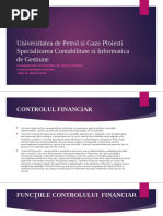 Acesta aste un atribut al functiei financiar-contabile din cadrul unitatiilor patrimoniale si un instrument de baza al gestiunii previzionale a [Link] este un proces de msurare a performanei, de iniiere i ntreprindere a unor aciuni care s asigure rezultatele dorite. Privit prin prisme diferite controlul este considerat: funcie a managementului prin el fiecare