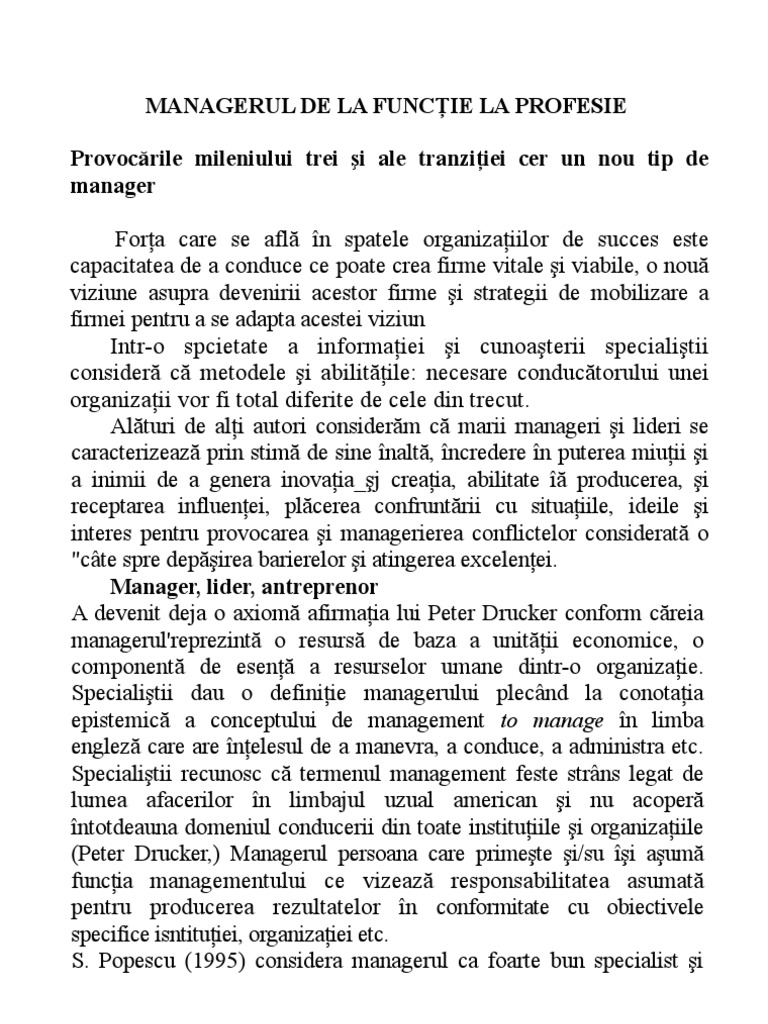 profesionalizării funcţiei de manager trebuie sâ evidenţiem faptul