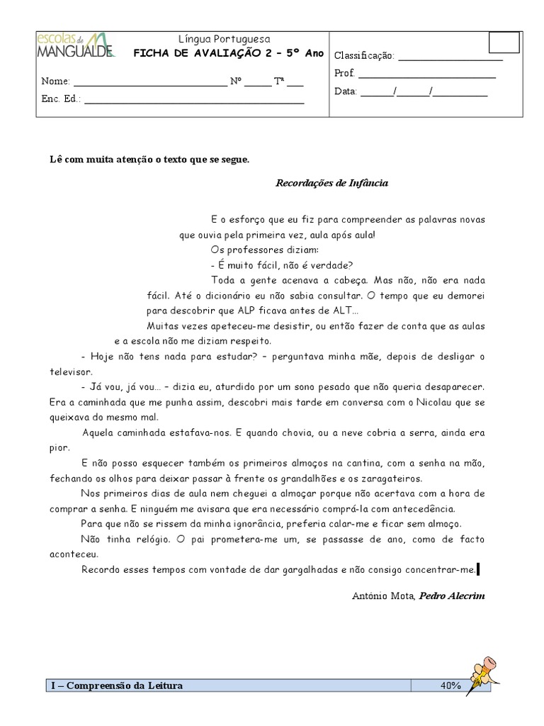 FICHA DE AVALIAO 2 5 Ano Classificao: ___________________