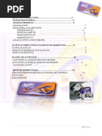 Sistemul de control este componenta finala a activitatii de [Link] sa in planul de marketing are ca scop urmarirea aplicarii programului de [Link],se stabileste masura in care au fost realizate in timp actiunile cuprinse in planul de marketing,evaluarea rezultatelor oferind informatii pentru fundamentarea si perfectionarea viitoarelor programe de marketing. In aceasta etapa a planului de marketing este necesara supravegherea reactiilor pietei fata de [Link] necesar sa se analizeze eficacitatea acestuia si gradul de satisfacere a nevoilor carora le este [Link] analizat comportamentul utilizatorului si este nevoie sa se obtina informatii legate de determinarea nivelului de acceptare a produsului de catre piata,de cuantificarea succesului acestuia in randul utilizatorilor. Scopul promovrii mrcii are ca scop cresterea vanzarilor cu 40% in urmatoarele 6 luni. Gradul de cunoatere a mrcii va fi evaluat prin anchete pe baz de chestionar.