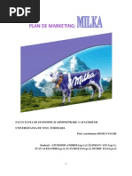 PUNCTE TARI (S): Ambalaj resigilabil noul amabalaj este resigilabil astfel incat poate fi deschis si inchis de mai multe ori. Ambalajul innovator atrage atentia clientilor acestia putandu-se bucura de fiecare data de prospetimea si gustul intens al ciocolatei Milka Promovare puternica printr-o campanile puternica de promovare, bazata in special pe spoturi publicitare reprezentative care reusesc sa starneasca interesul si curiozitatea clientilor de a consuma produsele Milka. Pe langa spoturile publicitare prin care se face cunoscuta, Milka mai este promovata si prin intermediul concursurilor cu premii, tombolelor, ajutoarelor si sponsorizarilor acordate, dar si prin binecunoscutul tur organizat anual in cele mai importante orase care te introduce in lumea Milka. In fruntea topurilor celor mai promovate marci de ciocolata pe tv, presa radio se afla Milka beneficiind de 12 844 de insertii la mare distanta de urmatorul competitor Poiana. Sirul de povesti cu marmote si ursi glumeti este doar o modalitate de a transpune in lumea reala si rapida a consumatorilor valorile unei lumi de poveste in care timpul are rabdare si lucrurile frumoase se dezvaluie fiecaruia dintre noi. Calitate superioara ciocolata Milka este apreciata datorita utilizarii laptelui din belsug de o calitate superioara, cantitatii mari de masa de cacao importanta in special pentru continutul bogat in protein. Cacaua folosita in prepararea ciocolatei Milka este obtinuta din cele mai fine boabe de cacao din soiurile