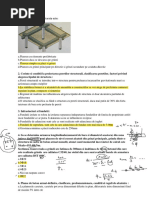 Pentru calculul eforturilor placa se reduce in general la planul su median. Proporiile geometrice i natura ncrcrilor fac ca plcile s fie solicitate n principal la momente ncovoietoare pe dou direcii (Mx,My). Aceste momente pot fi preluate numai prin dispunerea de armtur longitudinal. Forele tietoare (Qx,Qy) au, n cele mai multe cazuri, valori sczute ce pot fi preluate n bune condiii de beton, nefiind necesar armarea transversal. Tipul eforturilor predominante este influenat direct de grosimea plcilor, n mod convenional putndu-se admite urmtoarea clasificare practic: plcile de grosime medie (lmin/hp=20..40) sunt solicitate predominant la ncovoiere. Aceste plci sunt utilizate n mod curent la realizarea planeelor. plcile foarte subiri (lmin/hp40) sunt solicitate predominant la for axial (efect de membran) nsoit de ncovoiere. plcile groase (lmin/hp10) sunt solicitate la for tietoare i moment ncovoietor. Aceste plci se utilizeaz, de exemplu, ca radiere pentru fundaii. Calculul eforturilor n plci se face cu metodele specifice Teoriei Elasticitii, considernd un rspuns esenial elastic. Rezolvarea ecuaiei generale a plcilor plane se poate prin metode analitice sau numerice. Cu ajutorul programelor de calcul structural se poate determina starea de eforturi n plci prin metoda elementului finit. Alctuirea unui model analitic pentru fiecare caz practic de proiectare nu reprezint ns ntotdeauna soluia optim din cauza dificultilor de modelare specifice betonului armat. Ridic dificulti, de exemplu, modelarea reazemelor i concentrrile de eforturi secionale ce pot aprea n jurul punctelor de discontinuitate geometric sau de aplicare a ncrcrilor concentrate, stabilirea rigiditilor pentru seciunile fisurate. De aceea, n cazuri curente de proiectare pentru calculul eforturilor n plci se utilizeaz metode aproximative de calcul a eforturilor n plci. Alternativ, calculul plcilor se poate face considernd rspunsul neliniar prin scrierea unei ecuaii de echilibru pentru un mecanism de cedare al plcii. n acest capitol se prezint detaliat fundamentele i modul de aplicare pentru dou astfel de metode aproximative: metoda echilibrului elastic i metoda echilibrului limit. Metoda