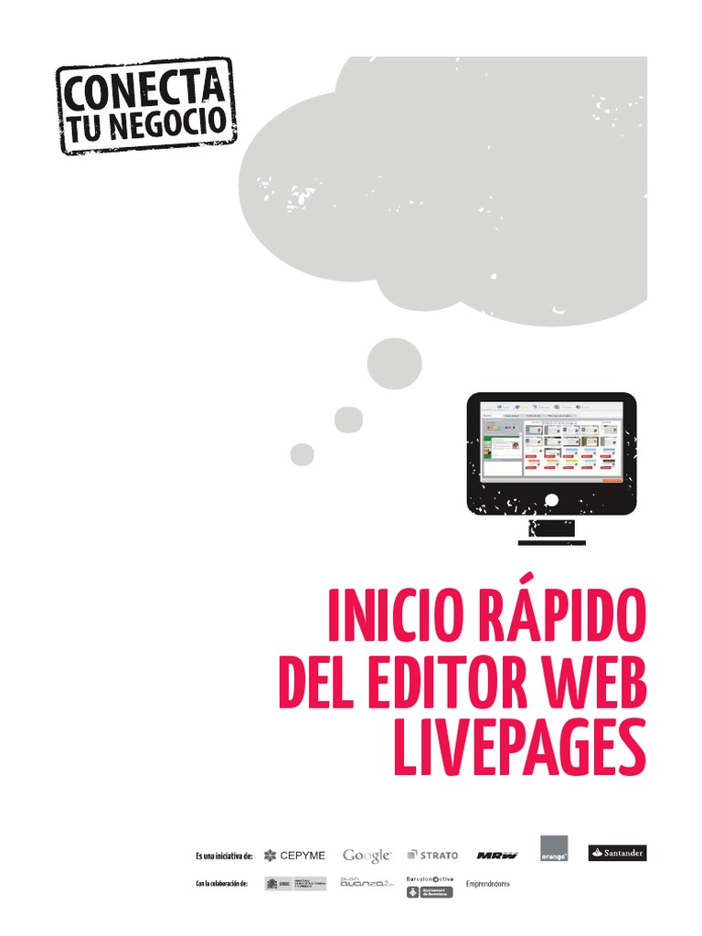 Con el editor web LivePages de tu paquete Conecta tu Negocio podrs crear tu propia pgina web y publicarla en Internet sin necesidad de conocimientos de programacin en tan slo unos minutos. En este pequeo manual de Inicio rpido te mostramos los pasos para crear una web exitosa.