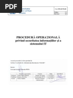 utilizat pentru a defini un set adecvat de niveluri de protecie, precum i necesitatea de a institui msuri speciale de manipulare. Pentru a reduce riscurile de eroare uman, furt, fraud sau de abuz de ncredere, responsabiliti de securitate trebuie s fie implementate nc din etapa de recrutare, incluse n contractele de munc i monitorizate n timpul activitii la locul de munc. Toi angajaii proprii sau terele persoane care au acces la sistemul informaional al unei companii ar trebui s semneze un acord de confidenialitate. Pentru a ne asigura c utilizatorii sunt contieni de ameninrile de securitate a informaiilor i sunt pregtii pentru a sprijini politica de securitate organizaional n cursul activitii lor la locul de munc, angajaii proprii sau terele persoane ar trebui s fie instruii cu privire la procedurile de securitate i utilizarea corect a sistemelor de prelucrare a informaiilor. Toate incidentele de securitate trebuie raportate i n acest sens trebuie implementat un sistem eficient i rapid de raportare a incidentelor de securitate, care s fie cunoscut de ctre toi angajaii. Informaiile de business critice sau sensibile trebuie s fie adpostite n locuri sigure, protejate ntr-un perimetru de securitate adecvat, cu bariere de securitate corespunztoare i controale de acces. Acestea ar trebui s fie protejate fizic mpotriva accesului neautorizat, deteriorare i interferene. Protecia oferit trebuie s fie proporional cu riscurile identificate. Echipamentele IT&C trebuie s fie protejate fizic mpotriva ameninrilor de securitate i de pericolele de mediu. Responsabiliti i proceduri pentru gestionarea i exploatarea tuturor sistemelor de prelucrare a informaiilor ar trebui s fie stabilite. Aceasta presupune dezvoltarea unor instruciuni de utilizare i proceduri de rspuns la incidente aprobate de conducerea unitii i cunoscute de ctre tot personalul . Msuri de precauie sunt necesare pentru a preveni i detecta introducerea de software ru intenionat. Software-ul i echipamentele de calcul sunt vulnerabile la introducerea de software rau intentionat, cum ar fi virui, viermi de reea, cai troieni. Utilizatorii ar trebui s fie contieni de peric olele software-ului neautorizat sau ru intenionat i managerii ar trebui, acolo unde este cazul, s introduc controale speciale pentru a detecta sau a preveni introducerea de software ru intenionat. n special, este esenial s se ia msuri de precauie pentru a detecta i a preveni infectarea cu virui informatici ale calculatoarelor angajailor. Proceduri de rutin ar trebui s fie stabilite pentru efectuarea de back-up-uri strategice, simularea periodic a restaurrii de pe copiile realizate, logarea evenimentelor i a defectelor, acolo unde este posibil i monitorizarea permanent a echipamentelor critice. Schimburile de informaii i de software ntre organizaii ar trebui s fie controlate, i trebuie s fie conforme cu legislaia n vigoare. Proceduri i standarde care s protejeze informaiile i datele n tranzit ar trebui s fie stabilite iar acestea s fie parafate n acorduri semnate de toate prile implicate.