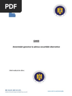 4.1. Tipuri de atacuri cibernetice i msuri de prevenire Romnia se confrunt n prezent cu ameninri provenite din spaiul cibernetic la adresa infrastructurilor critice, avnd n vedere interdependena din ce n ce mai ridicat ntre infrastructurile cibernetice i infrastructuri precum cele din sectoarele energie, telecomunicaii, transport, financiar-bancar, i aprare naional. Globalizarea spaiului cibernetic este de natur s amplifice riscurile la adresa acestora afectnd n aceeai msur att sectorul privat, ct i pe cel public. Ameninrile specifice spaiului cibernetic se caracterizeaz prin asimetrie i dinamic accentuat i caracter global, ceea ce le face dificil de identificat i de contracarat prin msuri proporionale cu impactul materializrii riscurilor. Ameninrile la adresa spaiului cibernetic se pot clasifica n mai multe moduri, dar cele mai frecvent utilizate sunt cele bazate pe factorii motivaionali i impactul asupra societii. n acest sens, putem avea n vedere criminalitatea cibernetic, terorismul cibernetic i rzboiul cibernetic, avnd ca surs att actori statali, ct i non-statali. Ameninrile din spaiul cibernetic se materializeaz prin exploatarea vulnerabilitilor de natur uman, tehnic i procedural cel mai adesea n: atacuri cibernetice mpotriva infrastructurilor care susin funcii de utilitate public ori servicii ale societii informaionale a cror ntrerupere / afectare ar putea constitui un pericol la adresa securitii naionale; accesarea neautorizat a infrastructurilor cibernetice; modificarea, tergerea sau deteriorarea neautorizat de date informatice ori restricionarea ilegal a accesului la aceste date; spionajul cibernetic; cauzarea unui prejudiciu patrimonial, hruirea i antajul persoanelor fizice i juridice, de drept public i privat. Pericolele i ameninrile din spaiul virtual vizeaz, n general, reelele, no durile de reea i centrele vitale, mai exact, echipamentele i sistemele fizice ale acestora (calculatoare, providere, conexiuni i noduri de reea etc.), precum i celelalte infrastructuri care adpostesc astfel de mijloace (cldiri, reele de energie electric, cabluri, fibr optic i alte componente). n aceeai msur, ele vizeaz i centrele de date, sistemele de nmagazinare, de pstrare i de distribuie a informaiei, suportul material al bazelor de date i multe altele. ns, nainte de toate, asemenea pericole i ameninri vizeaz sistemele IT (ntreprinderi, linii de producie, sisteme de aprovizionare cu materiale strategice, infrastructuri de resurse i de piee, institute de cercetri, sisteme de comunicaii). Din categoria pericolelor i ameninrilor mpotriva infrastructurilor critice ale spaiului cibernetic fac parte i urmtoarele: