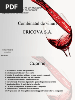Beciul Domnesc-Riesling-2003 12.5% Sec 0.375l Vita Romaneasca-Tamaioasa 11% Dulce 0.75l Romaneasca Cabernet Karpaten Berge`99 11% Dulce 0.75l Proles Pontica- Busuioaca 11,5% Dulce 1,5l Golden-vin de masa pet 10% Demidulce 2l Hamburg- vin de masa 10% Demidulce 1l Complexul de vinificaie Jidvei se gsete n Podgoria Trnave i se ntinde pe o suprafa de circa 1400 ha, cultivate cu urmtoarele soiuri: Feteasc Regal (450 ha), Riesling (280 ha), Sauvignon Blanc (200 ha), Muscat Ottonel (150 ha), Feteasc Alb (140 ha), Traminer (50 ha), Chardonnay (30 ha), Pinot Gris, Opoto, Sylvaner i Ezerfrut (100 ha). Din ntreaga suprafa cultivat, anual se rennoiesc aproximativ 50 ha. Vrsta medie a plantaiilor este de 10 ani, o dat cu replantrile fcndu-se i nlocuirea sortimentelor de mare productivitate cu cele calitative. Din punct de vedere financiar, este un centru puternic, dat fiind exportul tot mai ridicat i consumul mare. Produse oferite: GRAD CONTINUT CAPACITATE ALCOOLIC DE ZAHAR Vinars 42% 0.75l Vin Spumant - Jidvei Extra Dry 11% Sec 0.75l Castel Muscat Otonel 12% Demidulce 0.75l Castel Feteasca Regala 12% Dulce 0.75l Tezaur- Sauvignon+Feteasca 12% Sec 0.75l Jidvei Castel Dry Muscat 12% Demisec 0.75l Jidvei Castel Riesling 12% Demidulce 0.75l Miniaturi- Sauvignon Blanc 12% Demisec 0.200l Traminer 11.5% Demidulce 0.75l Perla Rosu 10.5% Demisec 1.5l S.C. Cotnari S.A. Podgoria Cotnari se ntinde pe 1800 ha, producia pe hectar fiind de 70-80% din producia celorlalte podgorii din ar sau din strintate. Vinurile de Cotnari sunt foarte cutate att datorit raritii, ct i a calitii deosebite. S.C. Cotnari S.A. a reuit s planteze vii i n alte zone din localitate: 108 ha cu Feteasca Alba, 51 ha cu Tmioasa Romneasc, 21 ha cu Frncu i 5 ha cu Gras. Procesul de vinificaie se desfoar n condiii moderne printr-un sistem industrial realizat ntre 1996-1998, cu o capacitate de producie de 50 de vagoane de struguri n 12 ore i cu o capacitate de depozitare de 1050 de vagoane din care 525 vagoane sunt depozitate n pivnie pentru conservare. Vinuri sunt expediate ctre diverse destinaii n butoaie de stejar sau n recipiente de sticl. Societatea deine i un cabine t experimental care conine 800.000 de sticle, unele din 1967. Productorii de vin din Cotnari au fost premiai cu 150 de medalii la 20 de concurs uri naionale i cu 95 de medalii la 15 concursuri internaionale. Vinurile de Cotnari sunt exportate n tari precum: SUA, Uniunea Europeana, Japonia, Rusia, rile Baltice.