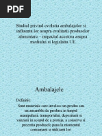 n acelai timp ambalajul trebuie s menin calitile alimentului. Ele nu trebuie s cedeze substane duntoare sntii, sau de natur s modifice proprietile organoleptice ale alimentelor nici s nu sufere modificri n perioada de depozitare. Ambalajul este considerat un element de strategie a ntreprinderii n comercialiyarea produselor. De aceea orientarea este n obinerea unor ambalaje ct mai corespunztoare, pentru a preyenta marfa ntr-o lumin ct mai bun, ambalajul fiind elemental legtura dintre producie i marketing (Oel I., Tehnologia produselor din carne).