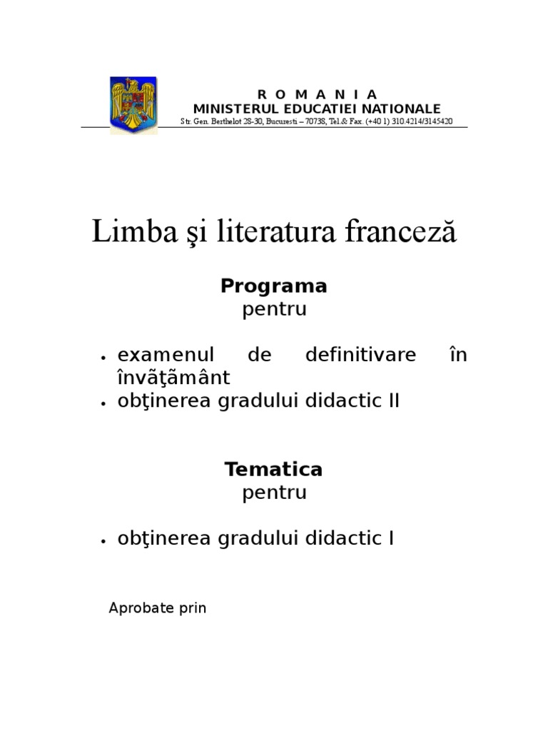 Programa Grad 2 Limba Franceza