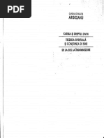 mai ine o /i vultur dect o via cioar, am mers nainte. Nu mai tiu dac am povestit cum m!am pregtit eu s ntlnesc rul. Nu poate avea c3ipul mai urt dect toate nenorocirile pe care le!am v/ut n desenele animate pe care le privesc copiii n /iua de a/i. 2ert este c am ascultat de /eci de ori e8orci/area de la $i3stria, la nceput cu alii, apoi singur i n cele din urm dup mie/ul nopii n ntuneric deplin. Asta pn ce nu am mai simit &ric n su&let. Nimic din ceea ce spunea rul nu m mai a&ecta5 nici vocea, nici imaginea lui, nici &aptul c e8ista nu mai nsemna nimic pentru mine. Apoi am nceput s le citesc stnd pe scaun. n timp, am reali/at c preoii de la care nvasem aplicaser psi3ologia invers, ducn!du!m n cele din urm unde tre uia. Nu cred c ar &i putut vreodat s m determine s &ac un lucru dac nu le!ar &i ngduit #umne/eu. 7uli vor spune c este un lucru care tre uie &cut n tain, alt&el i pierde puterea. .als( Adevrul, tot ce ine de #umne/eu trece pro a luminii i a descoperirii n &aa tuturor. #oar minciuna, rutatea i demonul i pierd puterea dac sunt scoase la lumin, ele pre&ernd a isul ntunericului. Aa c oricare tain a cretinismului, dac e valoroas, se va pstra i n lumin dac nu va disprea. 9n diamant rmne diamant i n ml, i e8pus ntr!o galerie de i"[Link] uie s &ie clar c acela care vrea s le citeasc va ntlni din partea rului toate &ormele de ispit care e8ist5 de la promisiuni la ameninri sau c3iar lovituri directe. Poate la nceput nu va ntlni nimic, dar n timp i va da seama c rul nu glumete niciodat i nu iart niciodat. 0u unul tiu c nu voi putea merge niciodat la el s!i spun5 )tii, iart!m c te!am lestemat(" )i demonii au armele lor i tiu s le &oloseasc e8trem de ine. 08ist tridentul, e8ist iciul numit coada de pisic, sunt mai multe. #ar mai presus detmce se pricepe s c3inuie, genernd pro leme ie i celor dragi ie i tre uie s gseti n tine puterea de a merge mai departe. nainte de a te apuca de citit molit&ele, se aprind E lumnri i tmie sau smirn, ca "ert& proprie &r de snge. 0u unul aprind lumnrile n cruce. .ac rugciunile de nceput, cele u/uale la orice slu" preoeasc de s&inire a apei, dup care ncep s citesc molit&ele. 2t timp eti ae/at pe scaun, demonii nu te pot ataca. Nu tiu de ce. %deal este s ii n mn o cruce, pentru ca s nu intre pe c3a,ra respectiv. $e pot citi i stnd n picioare, dar e&ect mai mare au cnd stai n genunc3i, cu singura condiie s &ii n post negru. Aa se s&ineau ?nu tiu dac se mai &aceF uile isericii de la mnstirea 2ernica, o dat pe an, cu trei preoi clugri. Nu cel care citete &ace e8orci/area, dei poate nva asta, ci ar3ang3elii care vin trimii de #umne/eu la au/ul rugciunii. 2e ar nsemna s &ac e8orci/area* $ poat iei din trup ?s se e8tracorporali/e/eF i, n astral, avnd sa ie, s taie capul demonului lundu!i ast&el puterea( n completarea molit&elor $&. +asile cel 7are i $&. loan Cur de Aur, eu mai citesc rugciunile de de/legare la locurile suprate de &armece din molit&elnic i rugciunea $&. 2iprian. 7ulte lucruri le!am adugat la rugciunile iniiale pentru c nu erau complete i nici &cute pentru mireni. Ast&el, la molit&e a tre uit s adaug la s&rit ca pe lng inimile noastre s apere #umne/eu i &amilia i pe cei din camera respectiv, ntruct se plim apoi rul de la unul la altul. Am mai adugat i alte tipuri de &armece dect cele cuprinse n rugciuni, pe care le! am ntlnit n practic. -a s&rit stropesc cu ag3easm mare luat de 'o otea/ i lsat descoperit n timpul rugciunii. )i pun pecetea #u3ului $&nt, crucea pe &runte, pe cea&, pe mini i eventual pe locul olnav dac se poate. %deea este de a se ocoli organele genitale. n rest se poate da cu ceva s&init oriunde pe corp. Pro lema care apare dac reueti e8orci/area sunt demonii pe care i scoi i tre uie trimii undeva. 0i nu au dect soluia s intre n cel care citete molit&ele sau s se duc unde vrea acesta( 2ontea/, pn la urm, cine este cel mai puternic. Pentru c &rica lor cea mai mare este ca nu cumva s!i trimii n iad. Ar &ace orice s nu a"ung acolo(