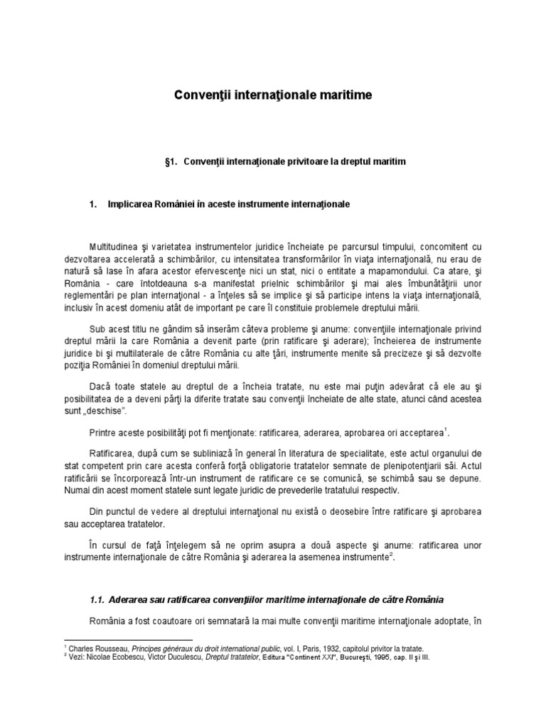1.1. Aderarea sau ratificarea conveniilor maritime internaionale de ctre Romnia Romnia a fost coautoare ori semnatar la mai multe convenii maritime internaionale adoptate, n