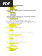 2 c. ansamblul credinelor i sentimentelor comune majoritii membrilor unei societi. 9. Liberul arbitru este o categorie: a. etic; b. a dreptului comercial; c. sportiv. 10. Se dau propoziiile: A Norma moral se poate impune prin constrngere statal. B Morala nu cuprinde sentimentele i sentimentele morale. C Exist o serie de categorii, care reflect problematica moralei, de uz general n etic. Alegei varianta corect: a. propoziia A este adevrat, propoziia B este fals, propoziia C este fals; b. propoziia A este adevrat, propoziia B este adevrat, propoziia C este fals; c. propoziia A este fals, propoziia B este fals, propoziia C este adevrat; 11. Se d propoziia incomplet: Afirmaia: Principiul fundamental al oricrei etici i legislaii este cea mai mare fericire a celui mai mare numr de oameni aparine...: a. curentului nihilist al eticii; b. curentului utilitarist al eticii; c. concepiilor rasiste. 12. Cuvintele greceti deon, deontos se traduc prin: a. datorie; b. discurs; c. tiin. 13. Regulile care precizeaz obligaiile etice ale unei profesii au n vedere: a. numai raporturile dintre membrii profesiei; b. numai raporturile dintre membrii profesiei i public; c. att raporturile dintre membrii profesiei, ct i raporturile dintre acetia i public. 14. Meninerea ordinii publice este una dintre raiunile de existen ale: a. statului; b. profesiunii medicale; c. profesiunilor liberale. 15. Nu se poate asigura, prin intervenia organelor profesiunii, respectarea: a. regulilor morale generale, care pot afecta imaginea profesiunii; b. obligaiilor de natur etic ce revin membrilor unei profesiuni; c. regulilor juridice edictate de stat pentru meninerea ordinii publice. 16. Nu fac parte din obiectul deontologiei: a. normele juridice penale; b. regulile stabilite de profesiune pentru asigurarea moralitii membrilor si; c. obligaiile morale generale a cror nclcare poate afecta imaginea profesiunii. 17. Normele deontologice: