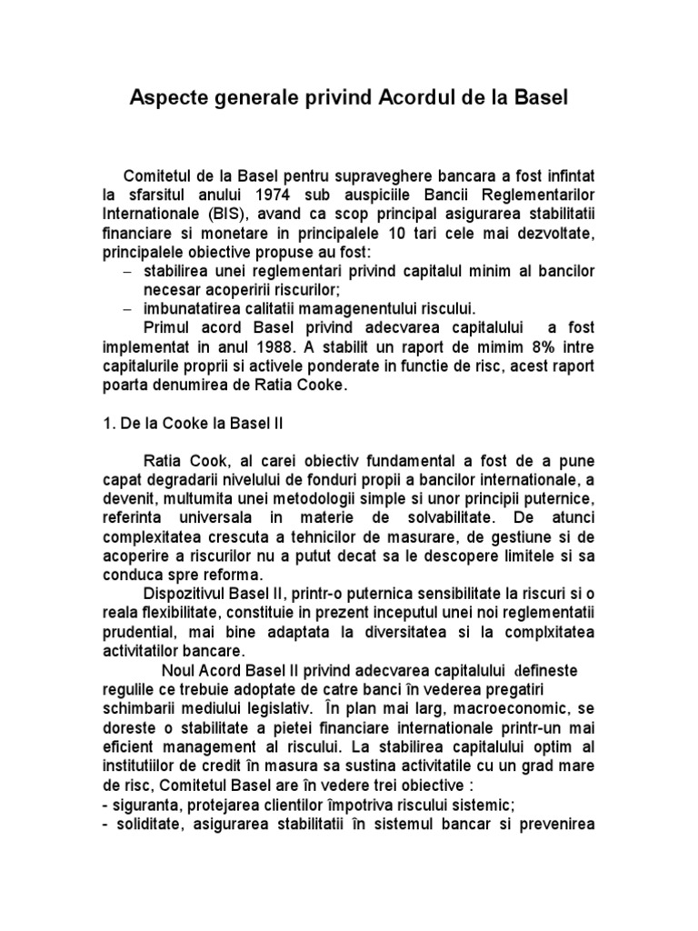 Aspecte generale privind Acordul de la Basel