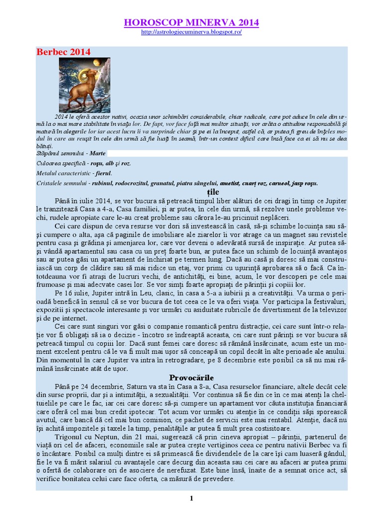 Horoscop Minerva 2014