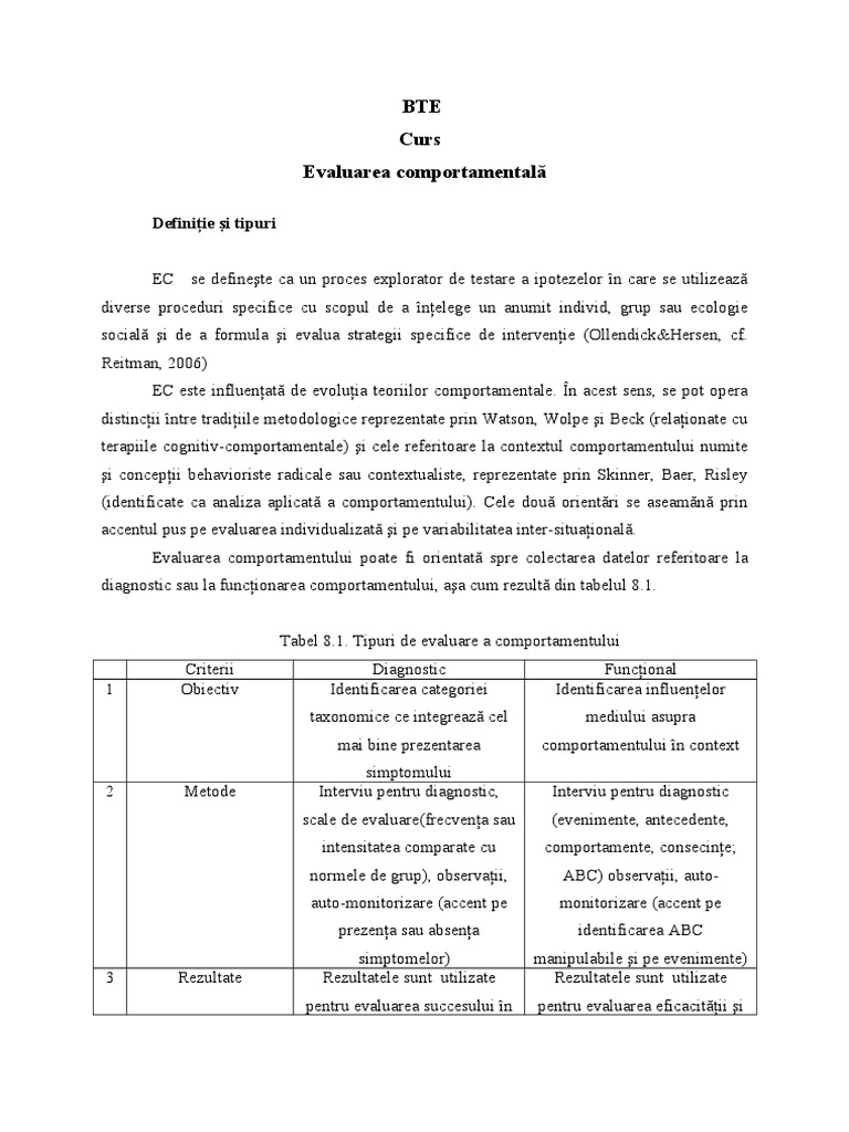 BTE Curs Evaluarea comportamental