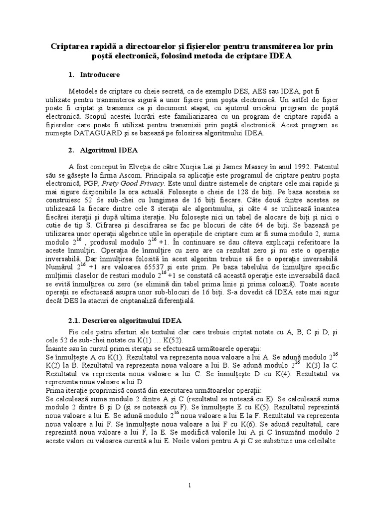 Se studiaz modul &n care pot fi criptate mesa!ele electronice folosind programul /#/.