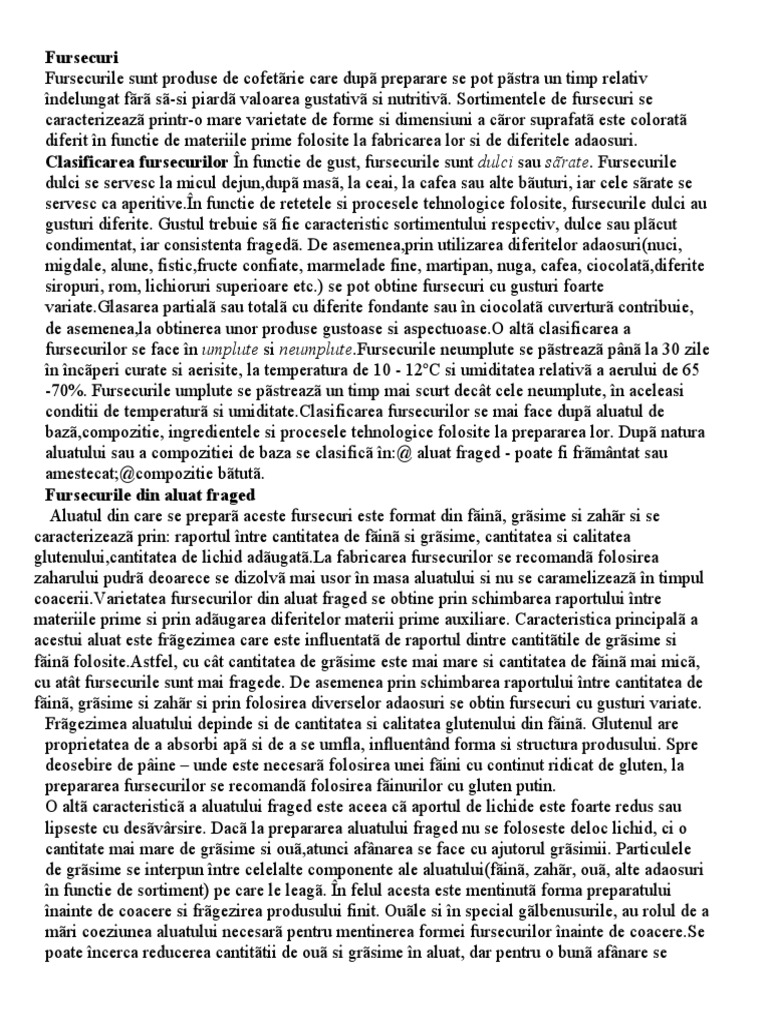 Fursecuri Fursecurile sunt produse de cofetrie care dup preparare se pot pstra un timp relativ ndelungat fr s-si piard