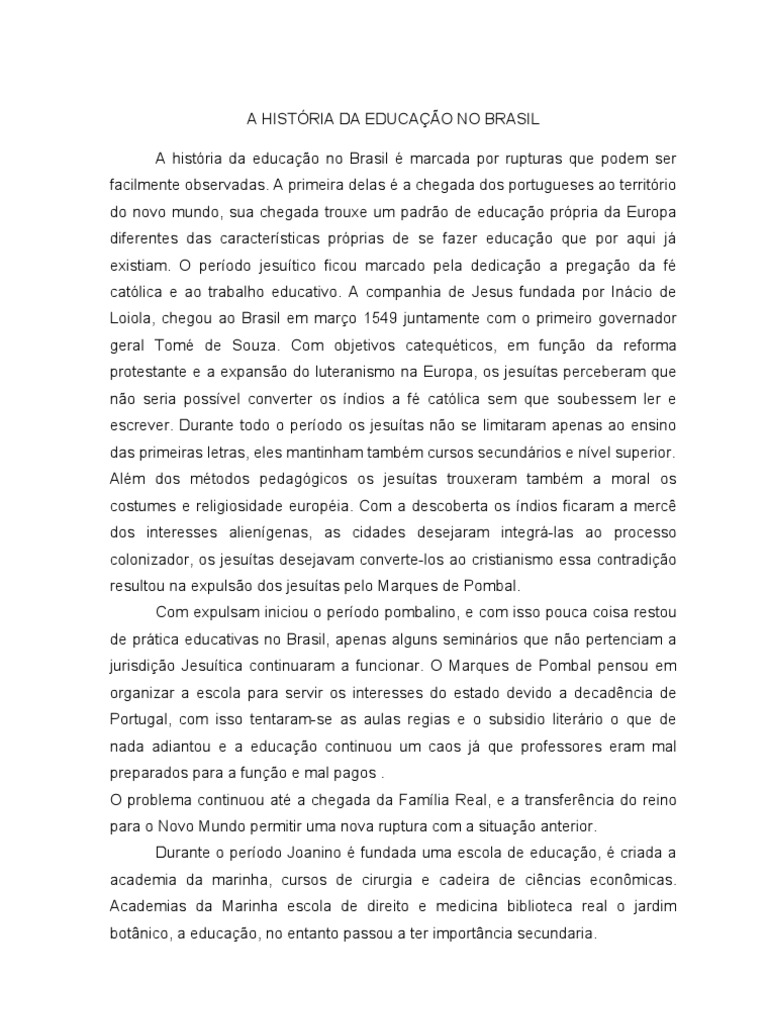 A HISTÓRIA DA EDUCAÇÃO NO BRASIL