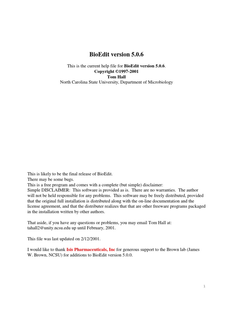 W. Brown, NCSU) for additions to BioEdit version 5.0.0.