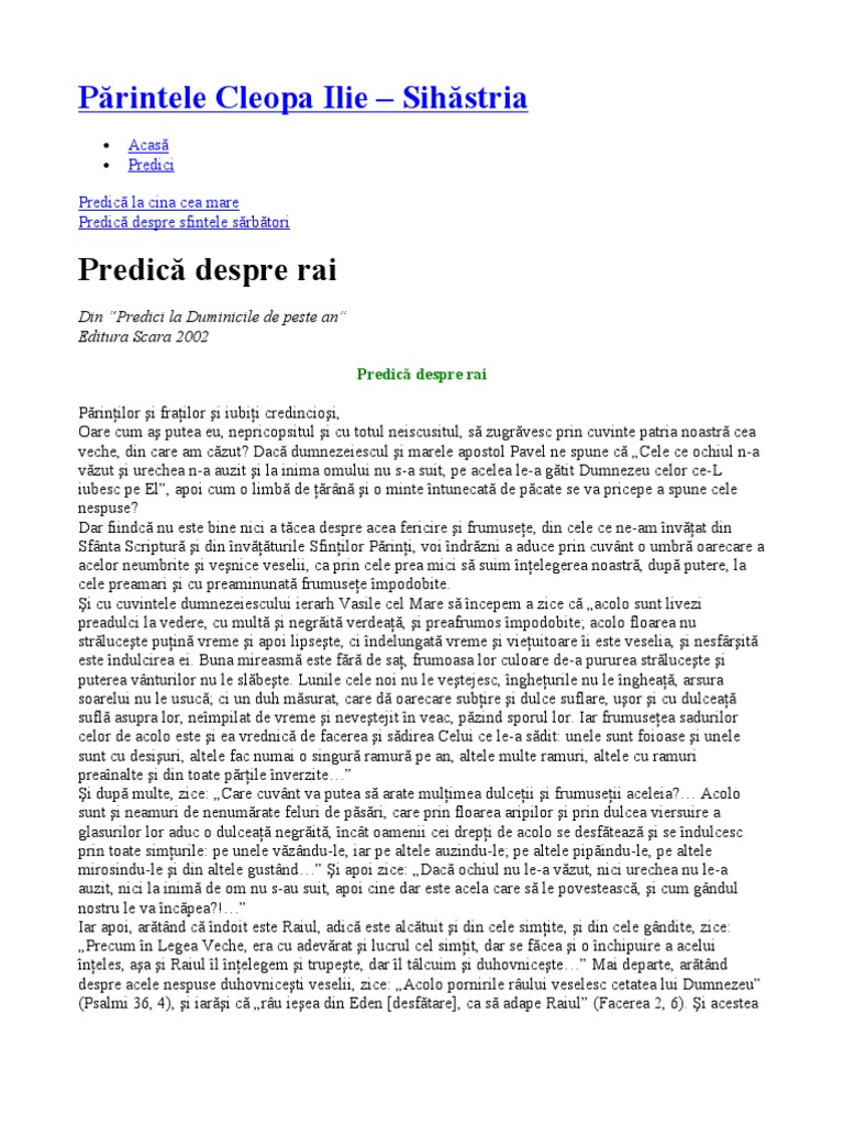 înainte se începe Raiul desfătării, pe care nu acum, ci după o vreme îl vei vedea». Şi îndată am auzit un
