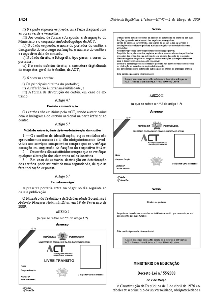 Decreto-Lei n.º 55/2009