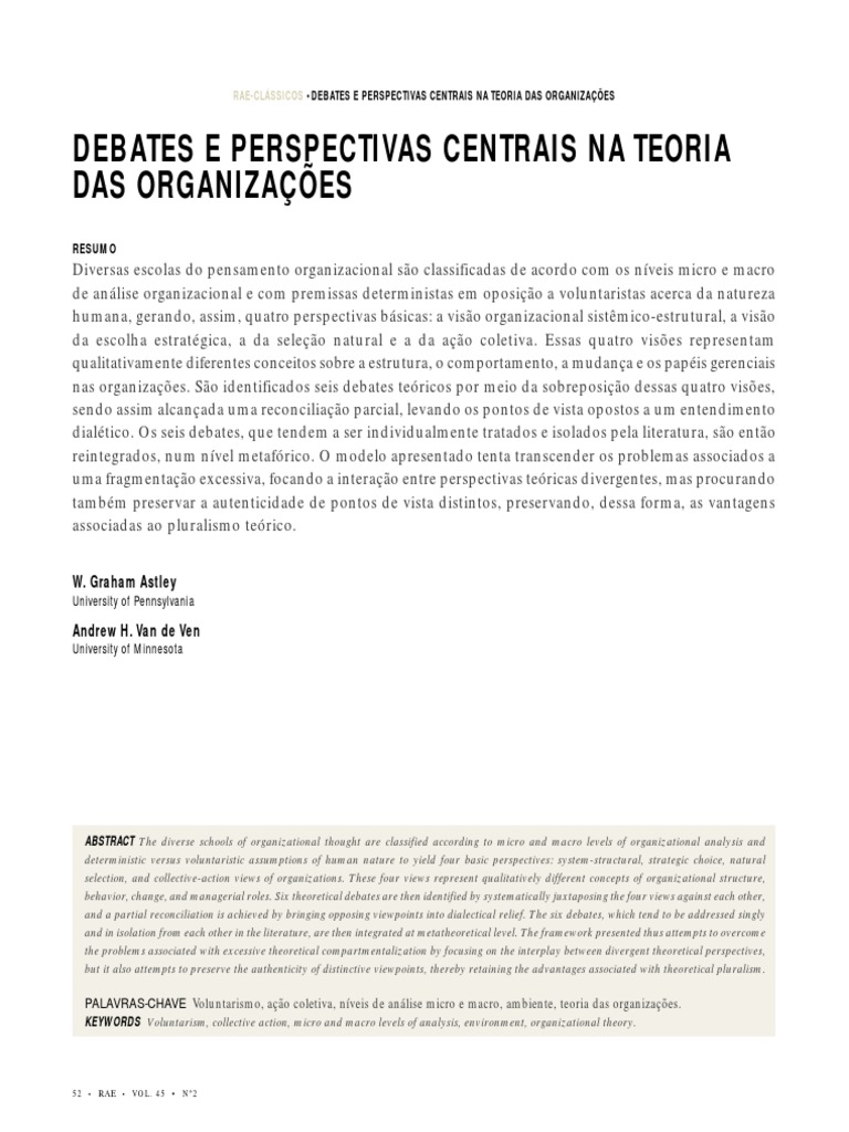 Artigo originalmente publicado sob o ttulo Central perspectives and debates in organization theory, de W. Graham Astley e Andrew H. Van de Ven, na Administrative Science Quarterly, v. 28, n. 2, p. 245-273, 1983. Publicado com autorizao da Johnson Graduate School of Management, Cornell University. Johnson Graduate School of Management, Cornell University. www.johnson.cornell.edu/ASQ