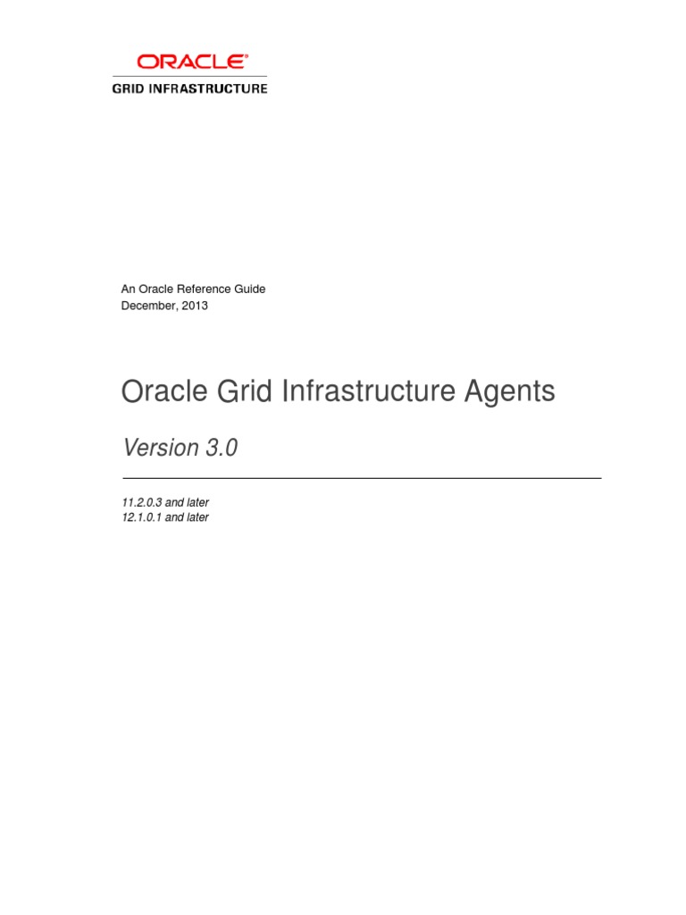 Oracle Grid Infrastructure Agents (Standalone and Bundled) December, 2013 Author: John P. McHugh, Ian Cookson Contributing Authors: Sourav Bhattacharya, Burt Clouse,Joe Debuzna, Andrey Gusev, Shankar Iyer, Chris Osterdoc, Jonathan Pham,Tracy West Oracle Corporation World Headquarters 500 Oracle Parkway Redwood Shores, CA 94065 U.S.A. Worldwide Inquiries: Phone: +1.650.506.7000 Fax: +1.650.506.7200 oracle.com