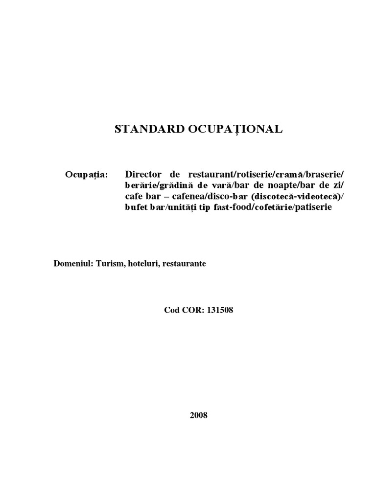 Echipa de validare / Referent de specialitate: Standardul a fost validat de Comitetul sectorial: Turism, Hoteluri, Restaurante.