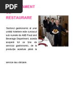 Gama de variabile Organigramele depind de: categoria restaurantului, capacitate, diversitatea de servicii oferite Numrul de lucrtori depinde de capacitate, de categoria de clasificare i de gradul de ocupare Structura compartimentelor depinde de diversitatea serviciilor oferite (salon clasic, bar, saloane de protocol, room service, catering etc. ) Ghid pentru evaluare Cunotinele necesare se refer la: -structura organizatoric specific unui restaurant -funciile compartimentelor i sectoarelor -posturile specifice activitii de producie i de servire -organigrama adecvat tipului, capacitii i categoriei de clasificare -regulile casei -reglementrile n vigoare privind protecia muncii, PSI La evaluare se urmrete: - realismul structurii organizatorice ntocmite - implementarea corect a structurii organizatorice - ntocmirea corect a Regulamentului de organizare i funcionare din organizaie: restaurant/ rotiserie/ crama / berrie/ grdin de var/ bar de noapte/ bar de zi/ cafe barcafenea/ disco-bar (discotec-videotec)/ bufet bar/ uniti tip fast-food/ cofetrie - repartizarea corect a sarcinilor pe compartimente i sectoare - planul de utilare i dotare i fluxurile tehnologice corecte - condiiile de munc asigurate lucrtorilor