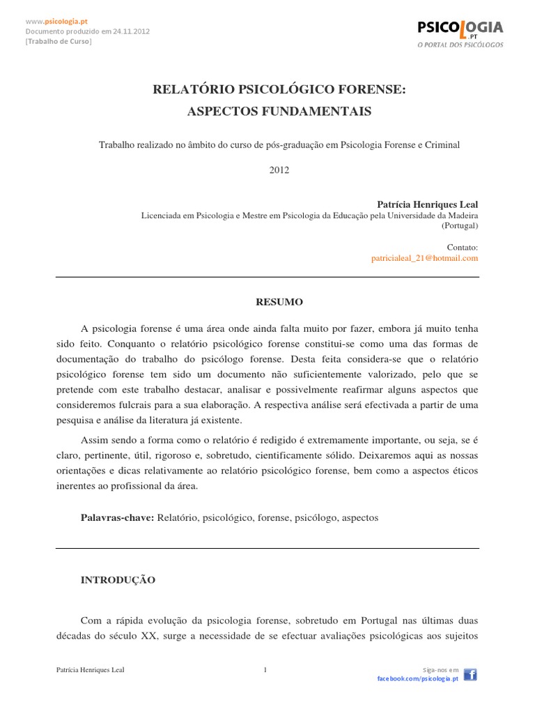 relatrio psicolgico forense.