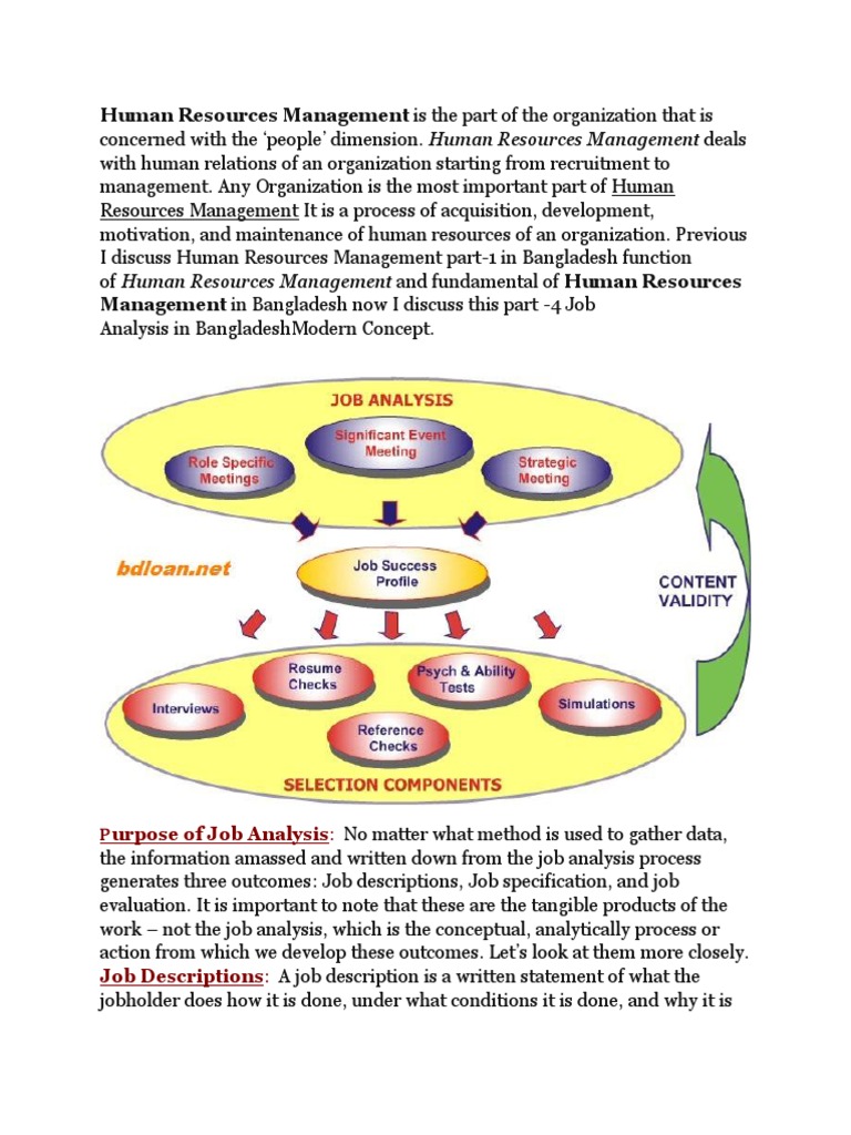 Human Resources Management deals with human relations of an organization starting from recruitment to management. Any Organization is the most important part of Human Resources Management It is a process of acquisition, development, motivation, and maintenance of human resources of an organization. Previous I discuss Human Resources Management part-1 in Bangladesh function of Human Resources Management and fundamental of Human Resources Management in Bangladesh now I discuss this part -4 Job Analysis in BangladeshModern Concept.