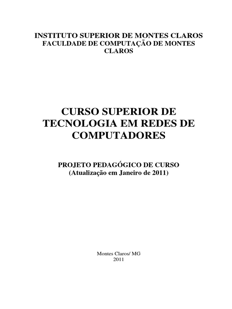 No presente Projeto Pedaggico se procurou ser aderente s propostas de projetos sugeridos pelo MEC e SBC (Sociedade Brasileira de Computao). A concepo deste plano pedaggico tem como objetivo propiciar a formao de um cidado que atue profissionalmente em empresas pblicas ou privadas, de qualquer porte ou tipo, para aplicao dos conhecimentos tcnicos e cientficos voltados para o projeto e administrao de redes de computadores, podendo tambm participar no desenvolvimento de pesquisas, produtos, processos e projetos especficos em redes de computadores e desenvolvimento de sistemas. Esse profissional estar capacitado, tanto para atuar em empresas dos setores industriais, de servios, servios pblicos e instituies de ensino e pesquisa, como para gerir seu prprio negcio com foco em redes de computadores. Assim, o currculo do Curso Superior de Tecnologia em Redes de Computadores da Faculdade de Computao de Montes Claros est estruturado de modo a: I. II. III. Conciliar a viso da FACOMP com as aspiraes dos corpos docente e discente e com as necessidades da comunidade na qual o curso se insere; Aumentar as oportunidades de educao permanente com a aplicao da cincia e o uso da tecnologia da informao e comunicao; Educar para a reflexo sobre as implicaes do seu trabalho, instrumentalizando o acadmico para a soluo de problemas organizacionais atravs da informtica; Formar profissionais habilitados para atuar em diferentes formas de trabalho decorrentes da dinmica evolutiva da sociedade atual; Aumentar as oportunidades de insero, no mercado de trabalho, de jovens atualmente com poucas perspectivas de alcan-lo; Formar um profissional crtico para avaliar as mudanas que a informtica, e o seu trabalho, estaro introduzindo na sociedade.