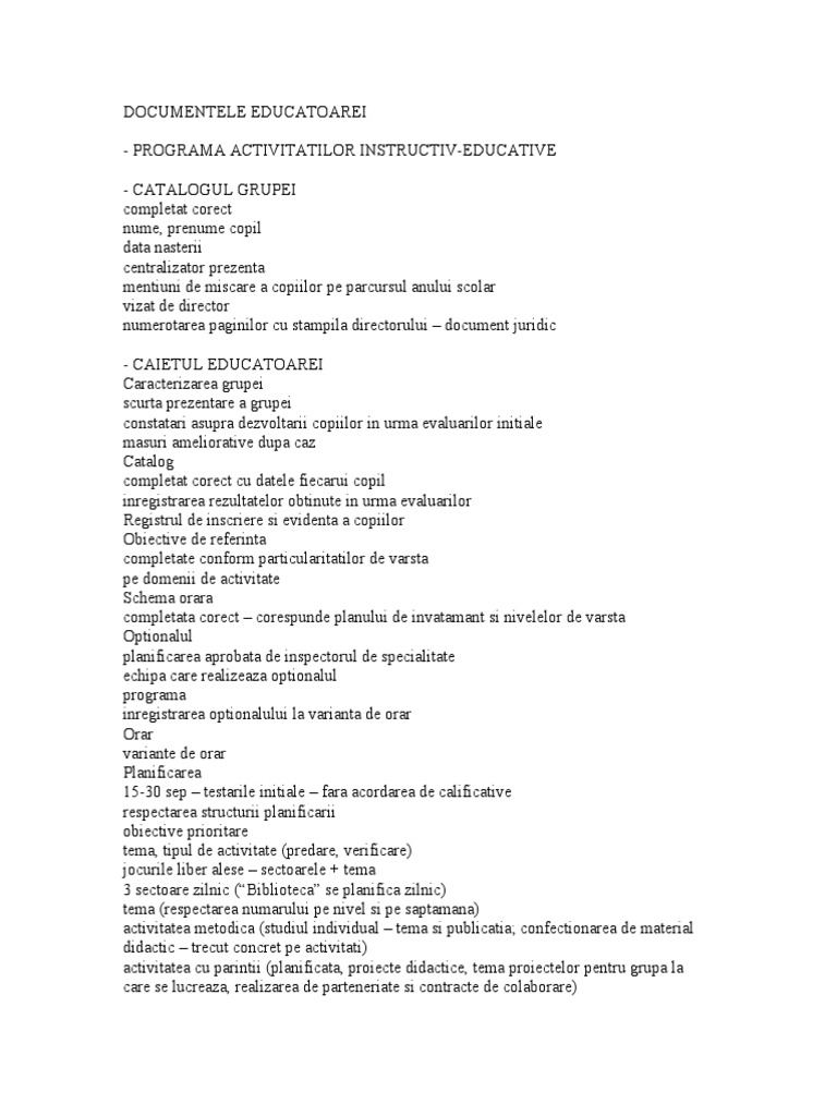 DOCUMENTELE EDUCATOAREI - PROGRAMA ACTIVITATILOR INSTRUCTIV-EDUCATIVE - CATALOGUL GRUPEI completat corect nume, prenume copil ata na!