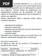 3 } Creare(rad,0,j,efp,pfp); cout<<"\nForma poloneza prefixata este: "; Parcurgere(rad); cout<<"\n"; return 0; } Modul n care se folosete forma polonez prefixat pentru evaluarea expresiei aritmetice asociate este urmtorul: se parcurge forma polonez prefixat de la dreapta la stnga utilizndu-se o stiv pentru memorarea operanzilor. Dac simbolul curent este un operand, el se introduce n vrful stivei. Dac simbolul citit este un operator, se aplic acest operator primilor doi operanzi din vrful stivei obinndu-se un rezultat. Cei doi operanzi sunt eliminai din stiv i n locul lor se trece rezultatul obinut. Se trece apoi la urmtorul simbol care conine forma polonez prefixat asociat expresiei aritmetice. Programul urmtor ilustreaz aceast modalitate de evaluare a expresiilor aritmetice. Operanzii sunt identificai printr-o singur liter, iar operatorii sunt binari din mulimea +,-,*,/. #include<iostream> #include<string.h> using namespace std; char e[100]; float s[100],x,y; //s este stiva int n,i,p; int main() { cout<<"\tIntroduceti expresia aritmetica in forma prefixata\n"; gets(e); n=strlen(e); for(i=n-1;i>=0;i--) if(e[i]=='+'||e[i]=='-'||e[i]=='*'||e[i]=='/') { x=s[p--]; y=s[p]; switch(e[i]) { case '+': s[p]=x+y; break; case '-': s[p]=x-y; break; case '*': s[p]=x*y; break; case '/': s[p]=x/y; break; } } else s[++p]=e[i]-'0'; cout<<"\nvaloarea expresiei este "<<s[1]<<endl; return 0; }