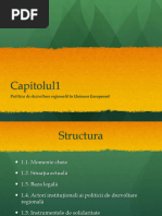 Cuprins Introducere Capitolul I. Prezentarea generala a instrumentelor de sprijin ale Uniunii Europe 1.1. Fonduri de Solidaritate 1.2. Fonduri Structurale 1.2.1. Fondul European de Dezvoltare Regional (FEDER) 1.2.2. Fondul Social European 1.2.3. Fonduri de coeziune [Link] European Agricol pentru Dezvoltare Rural 1.2.5. Fondul European pentru Pescuit 1.3. Situaia absorbiei fondurilor europene in Romnia Capitolul II. Studiu de caz. Absorbia fondurilor europene n oraul Mcin, judeul Tulcea 2.1. Date generale despre oraul Mcin 2.2. Scurt istoric 2.3. Analiza Diagnostic - Potenialul socio-uman 2.3.1. Resursele umane 2.3.2. Infrastructura social 2.3.3. Infrastructura tehnico-edilitar 2.3.4. Concluzii ale analizei diagnostic - potenialul socio-uman Analiza SWOT 2.4. Analiza Diagnostic Cadrul economic 2.4.1. Economia local prezentare n context 2.4.2. Potenialul de afaceri 2.4.3. Sectorul agricol 2.4.4. Servicii 2.4.5. Concluzii Analiza Diagnostic Cadrul economic 2.5. Diagnosticul Economic i Instituional 2.5.1 Cadrul instituional 2.5.2. Diagnosticul economic 2.5.3. Concluzii ale diagnosticului economic i instituional Capitolul III. Studiu de caz - Absorbia fondurilor europene n oraul Mcin, judeul Tulcea Concluzii i propuneri Bibliografie Anexe
