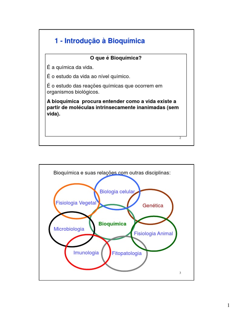 O que Bioqumica? a qumica da vida. o estudo da vida ao nvel qumico. o estudo das reaes qumicas que ocorrem em organismos biolgicos. A bioqumica procura entender como a vida existe a partir de molculas intrinsecamente inanimadas (sem vida).
