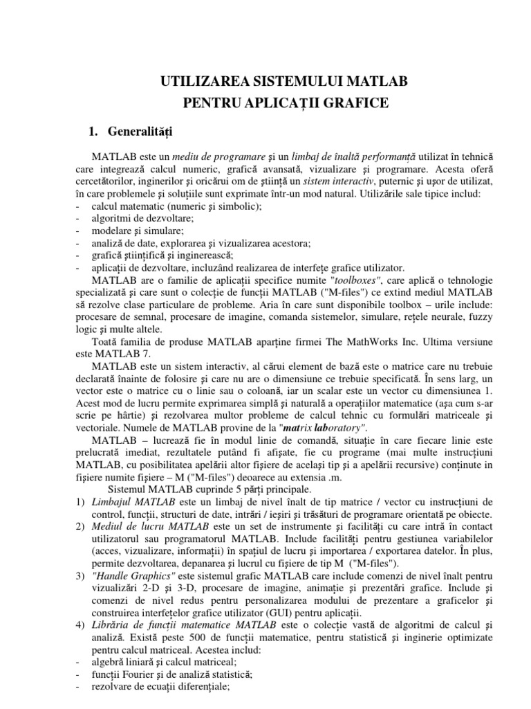 Cursul îşi propune să descrie facilităţile grafice MATLAB pentru vizualizarea datelor şi