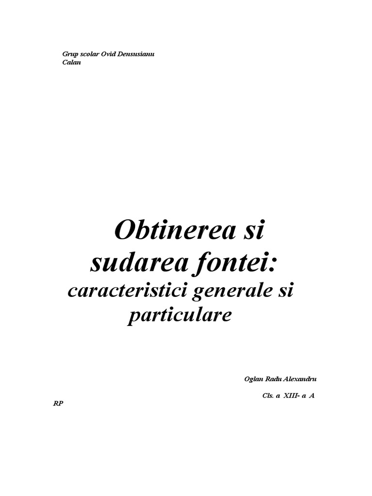 1.2. Procedee de obtinere, caracteristici ale fontei...........................3