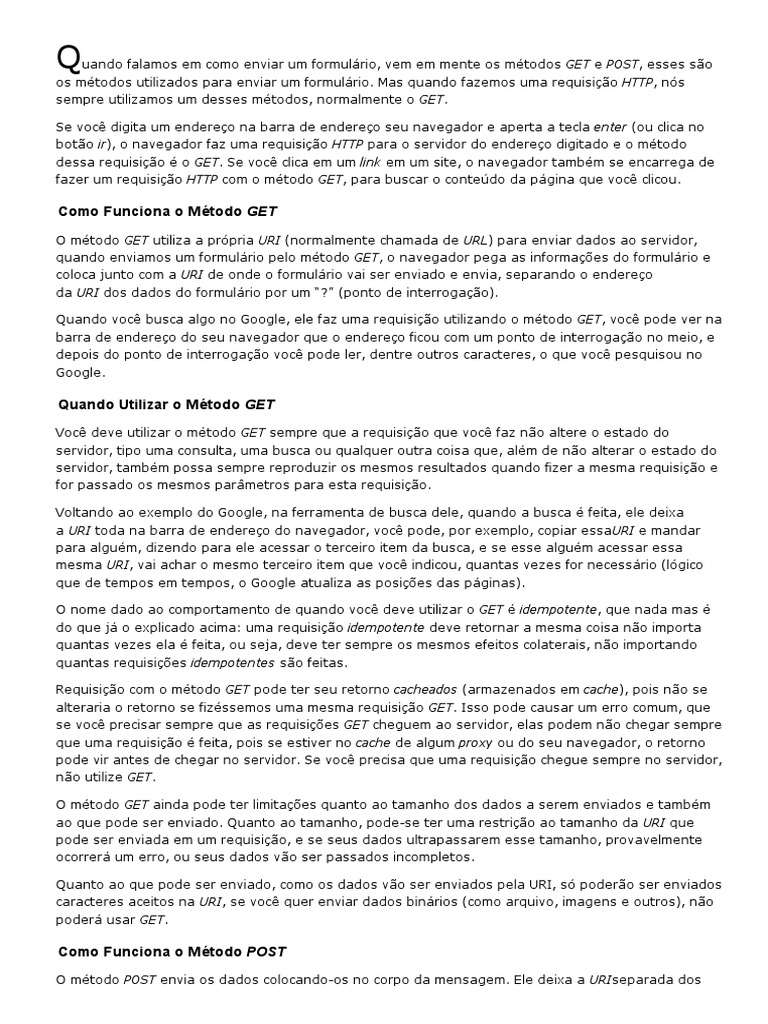 ao que pode ser enviado. Quanto ao tamanho, pode-se ter uma restrição ao tamanho da URI que pode ser enviada em um requisição, e se seus dados ultrapassarem esse tamanho, provavelmente ocorrerá um erro, ou seus dados vão ser passados incompletos.