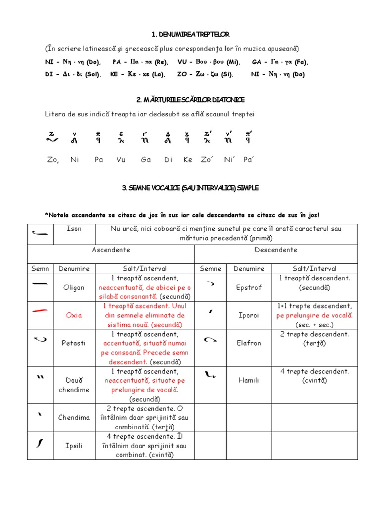 *Notele ascendente se citesc de jos n sus iar cele descendente se citesc de sus n jos!
