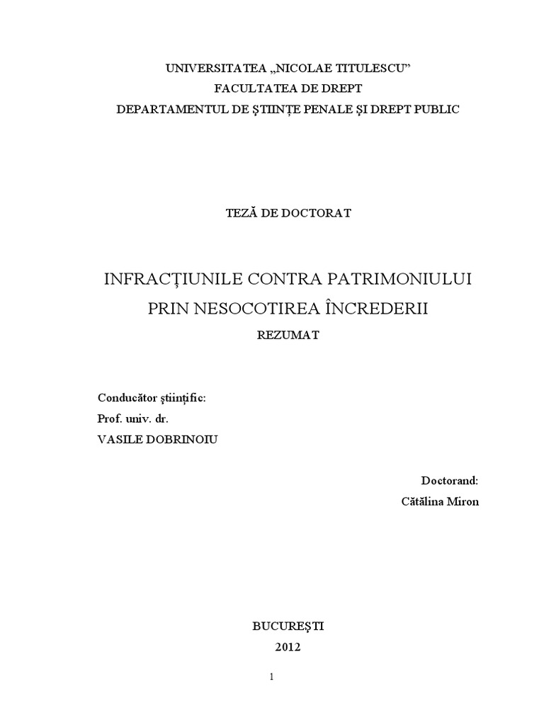 Seciunea 1 Abuzul de ncredere n Codul penal 1969 ............................ 11